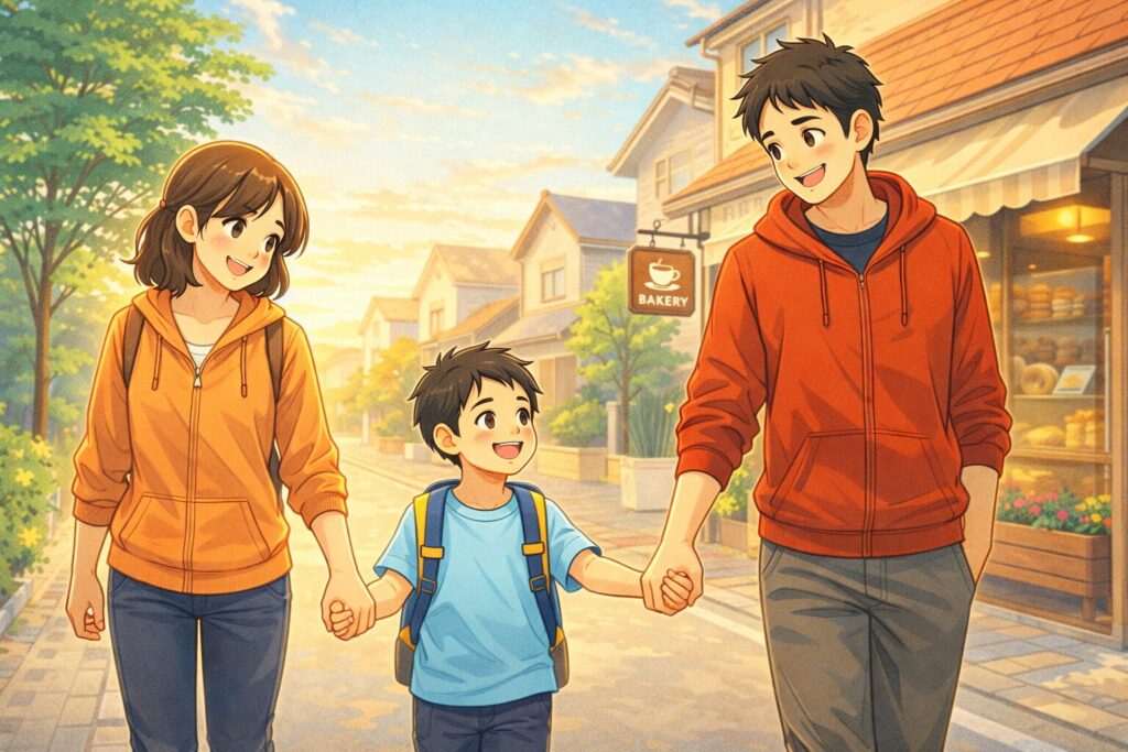 子どもと歩きながら、